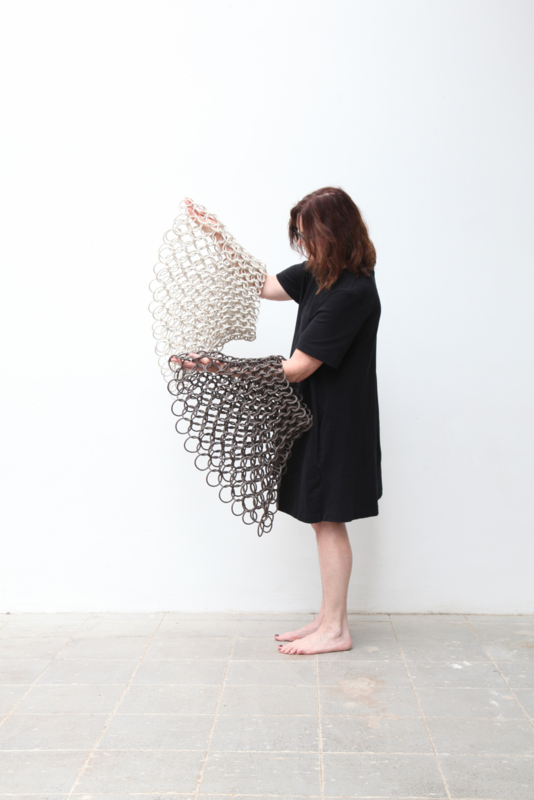 She has many different shapes in itself. You can change the shape of the sculpture every day if you like and enjoy the sound and feeling. It is possible to hang on your wall on several tiny hooks.