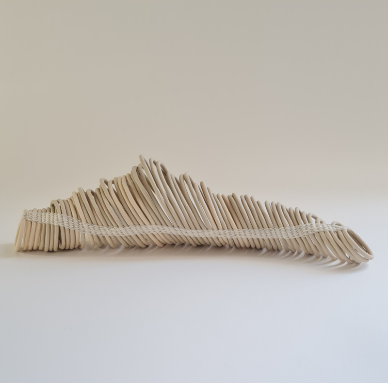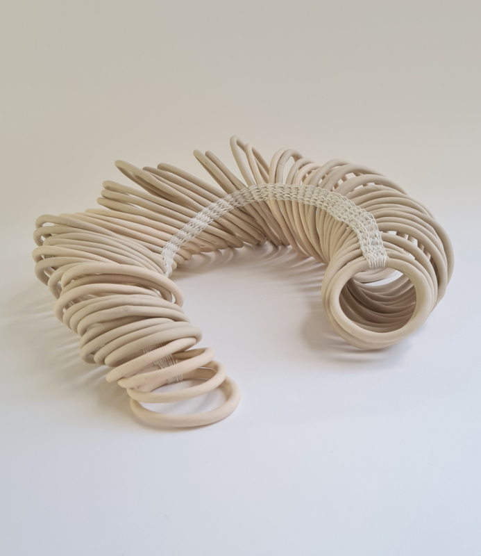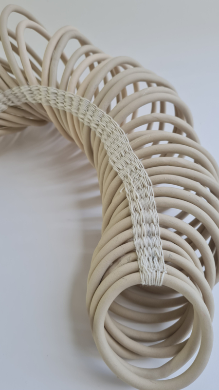 The circels are crotched together with cotton. This sculpture is very flexibel and easy to handle.